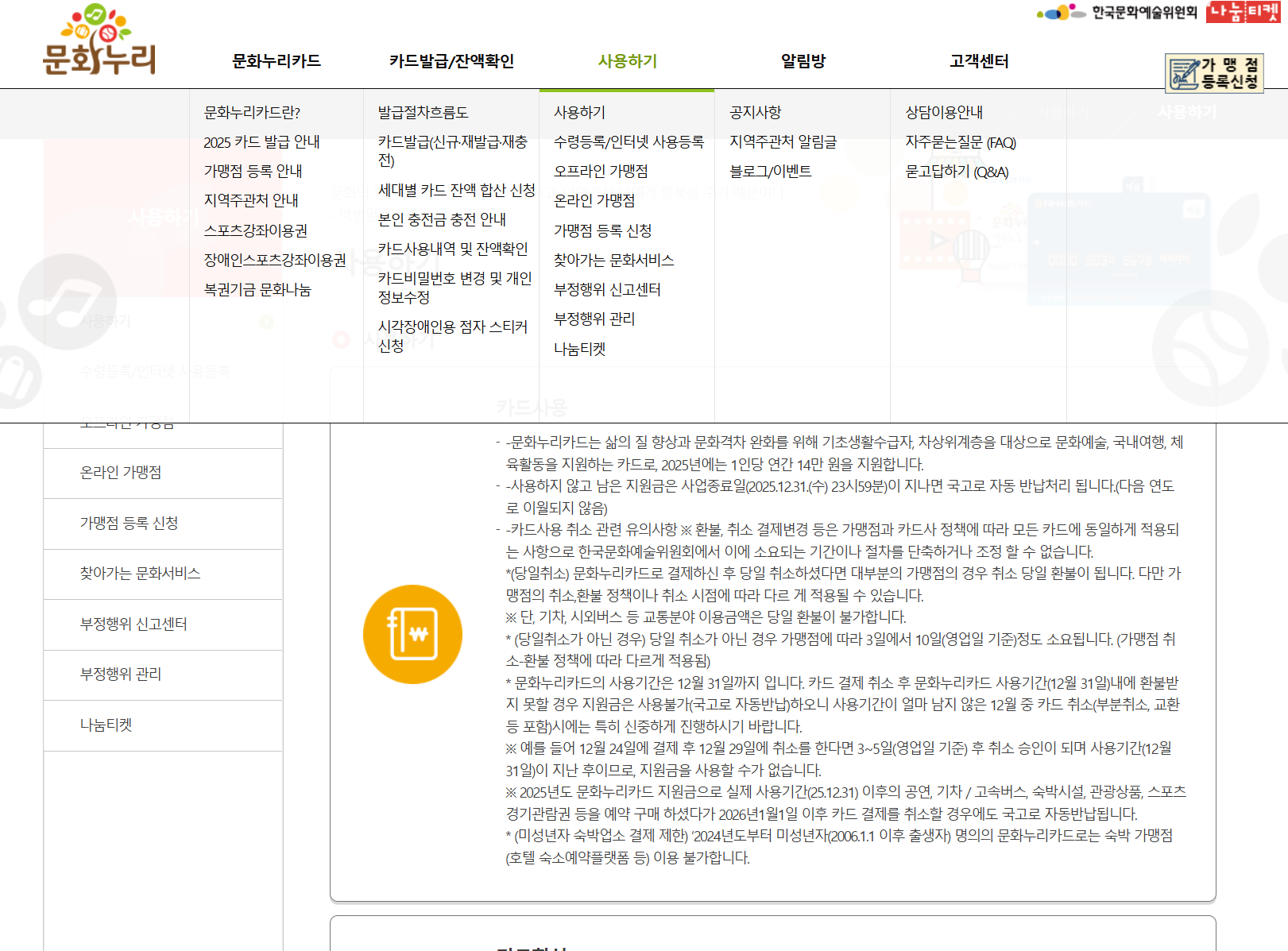 문화누리카드는 식료품, 의류, 생필품, 전자기기, 카페·음식점 등에서는