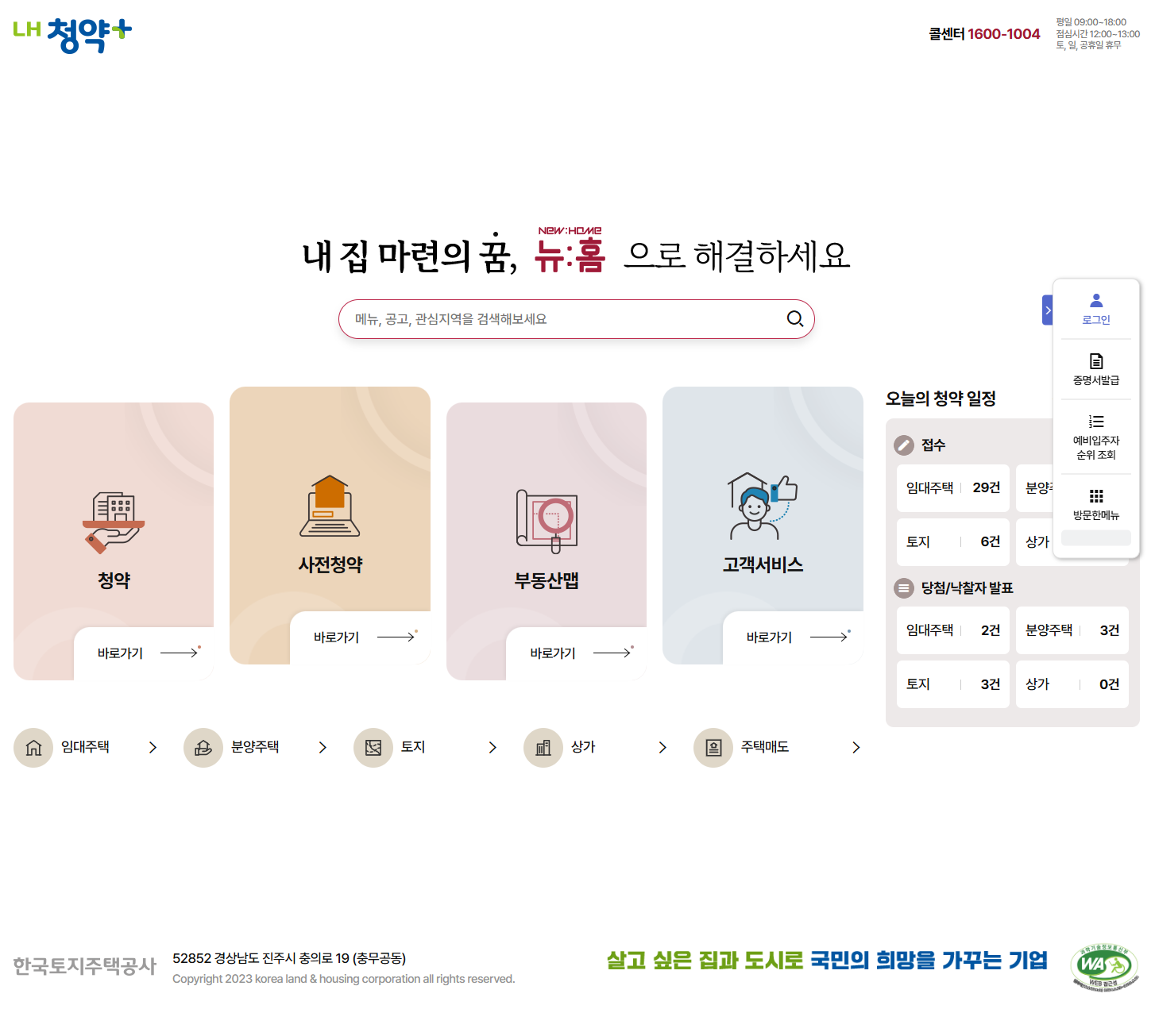 국민주택 1순위: ●주택청약종합저축 가입 2년 이상 ●납입 횟수 24회 이상 ●무주택 세대주