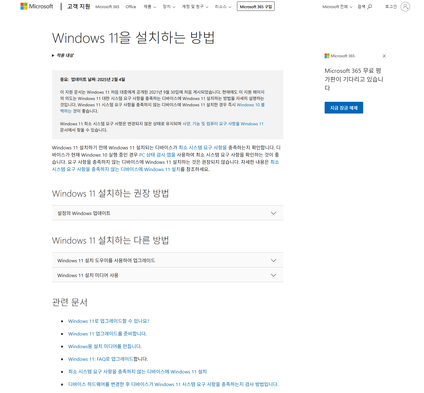 절차: Microsoft 웹사이트에서 Windows 11 설치 어시스턴트 다운로드 → 실행 → 지침 따르기