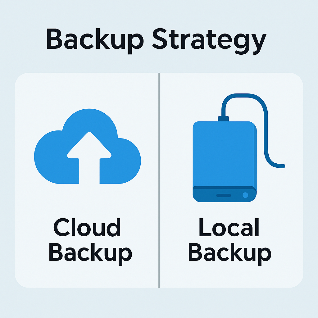 추천하는 이중 백업 전략은 아래 그림처럼 클라우드와 로컬 백업을 동시에 활용하는 방식입니다.