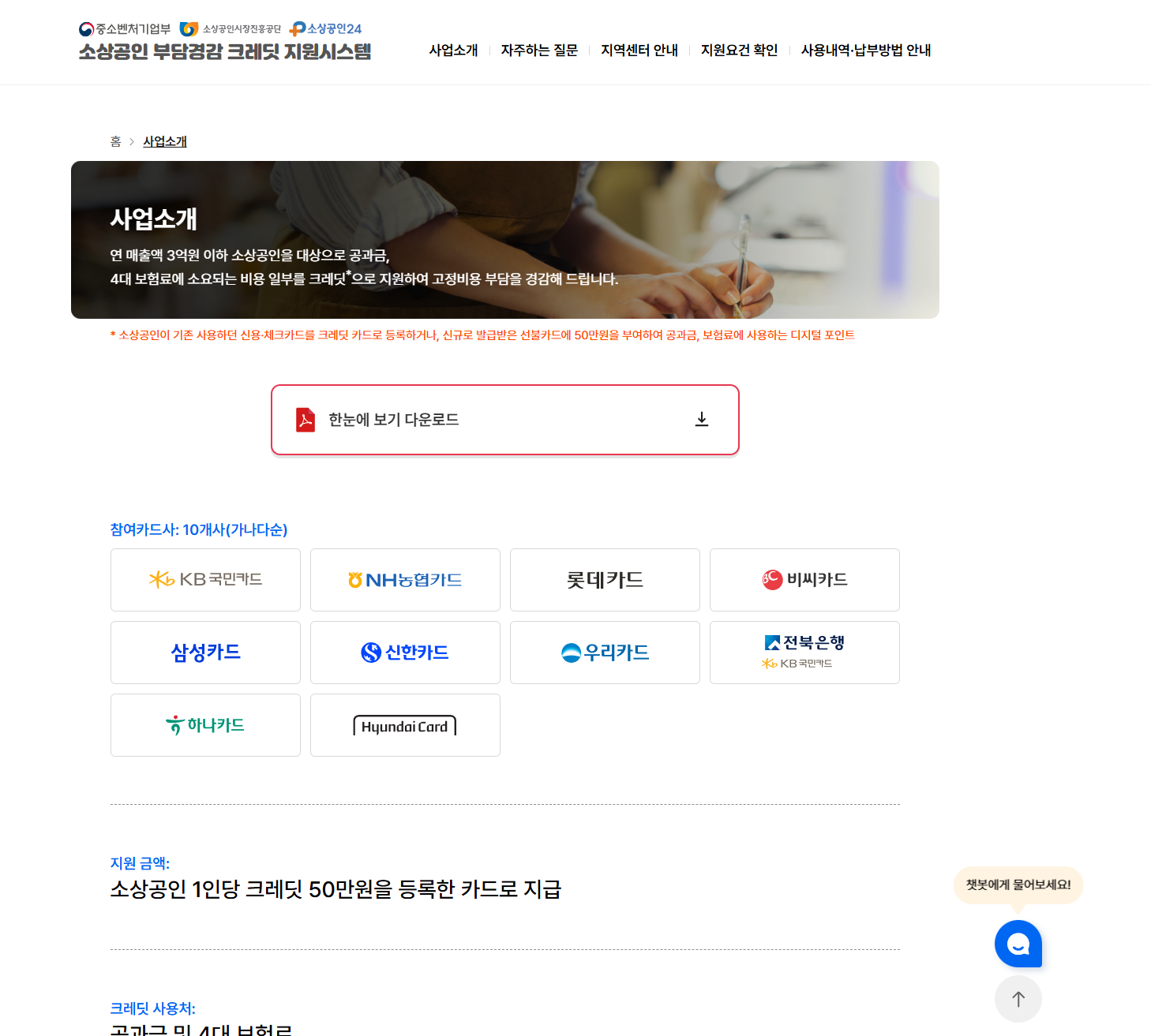 지금 바로 ‘부담경감크레딧.kr’ 또는 ‘소상공인24’에 접속해 50만 원 크레딧을 신청하세요. 소상공인 여러분의 경영 안정과 사업 지속성장을 기원합니다!