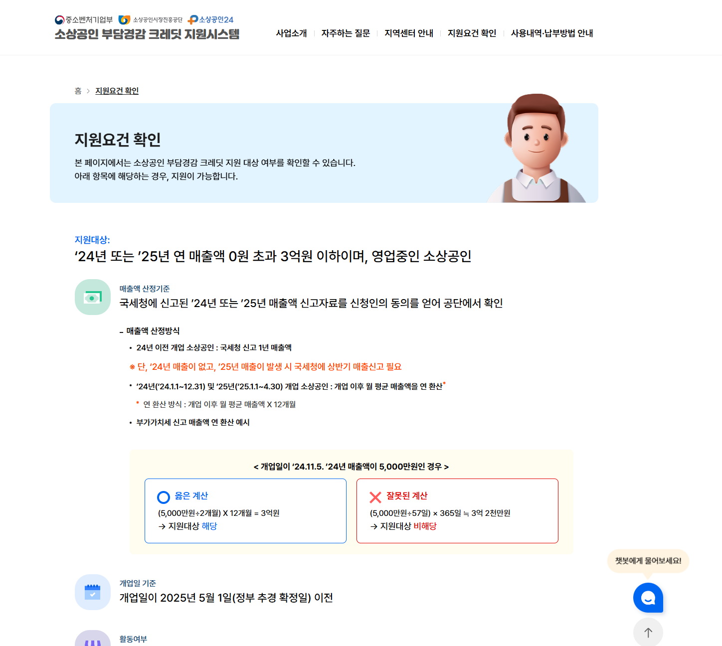 연 매출 기준: 2024년 또는 2025년 연 매출액이 0원 초과 3억 원 이하인 소상공인
